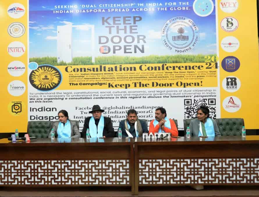 भारतीय मूल के व्यक्तियों के एक समूह, इंडियन डायसपोरा ग्लोबल ने दुनिया भर में भारतीय डायसपोरा के लिए दोहरी नागरिकता की वकालत करते हुए “कीप द डोर ओपन” अभियान शुरू किया है। इस अभियान का उद्देश्य उन भारतीय प्रवासियों के सामने आने वाली चुनौतियों का समाधान करना है, जिन्हें मौजूदा नियमों के कारण दूसरे देश में नागरिकता प्राप्त करते समय अपनी भारतीय नागरिकता छोड़नी पड़ती है। भारत में दोहरी नागरिकता के कानूनी, संवैधानिक, सामाजिक, सांस्कृतिक, आर्थिक और विधायी पहलुओं पर गहराई से विचार करने के लिए इंडियन डायस्पोरा ग्लोबल ने दिल्ली के कॉन्स्टिट्यूशनल क्लब ऑफ इंडिया में मंगलवार को एक परामर्श सम्मेलन का आयोजन किया। इस परामर्श सम्मेलन में बतौर मुख्य अतिथि एमपी बांका, लोकसभा श्री गिरिधारी यादव उपस्थित हुए। जबकि इस दौरान डायसपोरा ग्लोबल के फाउंडर और चेयरपर्सन श्री मेल्विन विलियम्स, श्री गुरु रविदास विश्व महापीठ भारत के महामंडलेश्वर एवं राष्ट्रीय अध्यक्ष सुरेश राठौर, इंडियन डायसपोरा ग्लोबल कंट्री हेड एडवोकेट साजू फ्रांसिस, वरिष्ठ पत्रकार और कार्यक्रम मॉडरेटर श्री विनय कुमार और श्री मन्नू सिंह तौमर आदि गणमान्य लोग उपस्थित रहे।